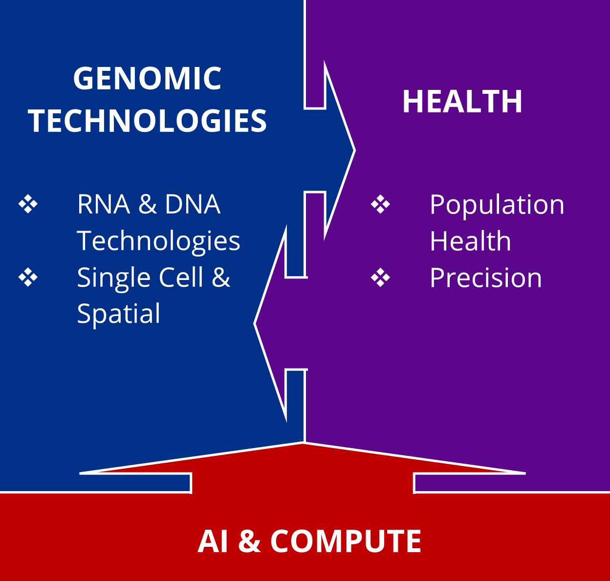 Since its establishment in 2000, GIS has pushed the frontiers of genomic technologies and algorithms to unveil fresh perspectives into life. Over the years, the increased affordability of sequencing, integration of multimodal data, and the development and application of regenerative AI have greatly increased our understanding of human health and the factors that influence it. New technologies have also revealed novel insights into old challenges, allowing researchers and clinicians to better understand human diseases. Coupled with the development of home-made world-class algorithms including new genome mappers, assemblers, variant callers, error correctors, and algorithms that enable us to study RNA and interpret single cell and spatial data, the new technologies have enabled us to gain unprecedented insights into the evolving biology and human health.
