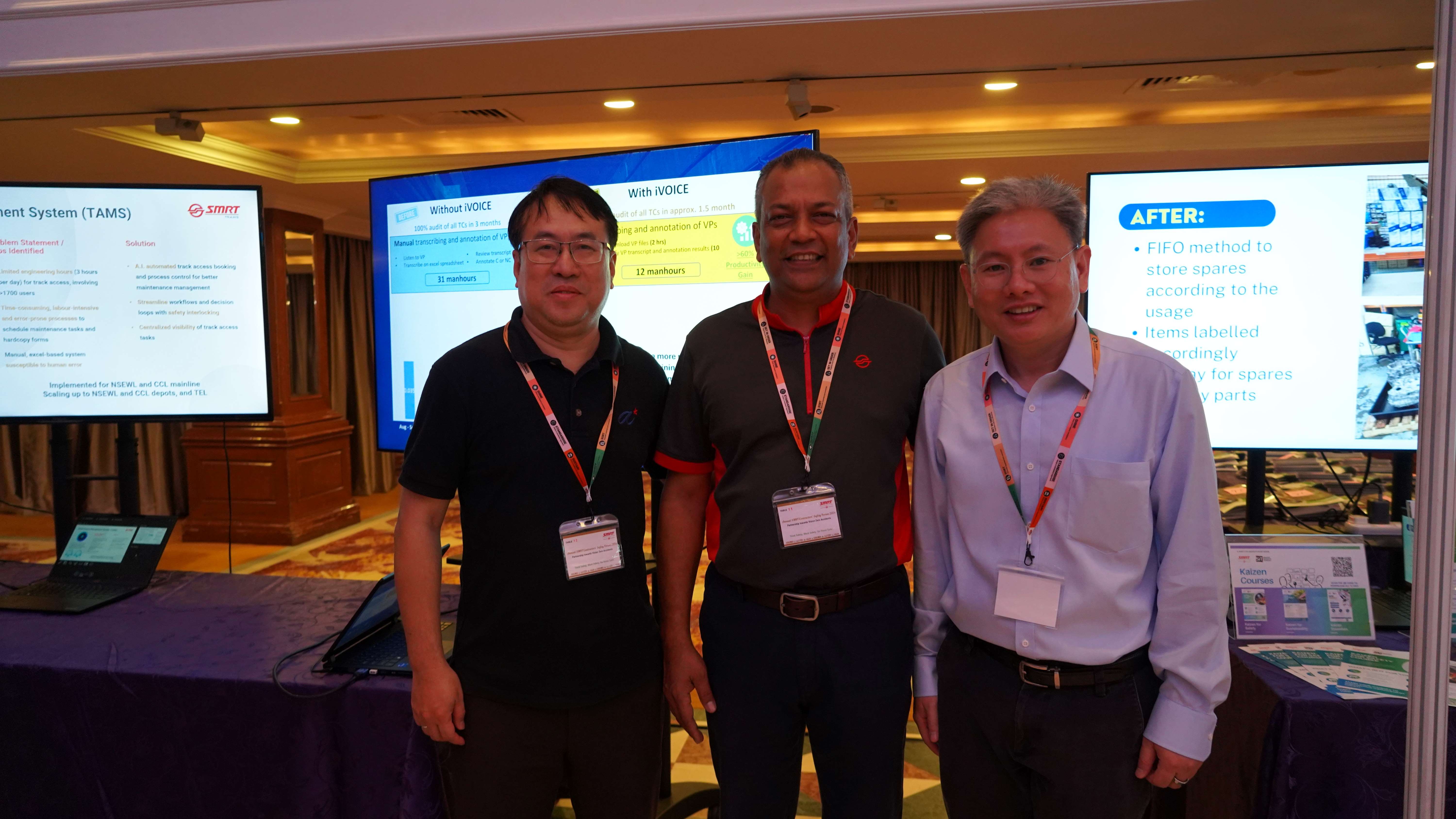 Our Senior Principal Scientist, Tran Huy Dat with SMRT end user, and Prof Tay Chuan Beng of SIT