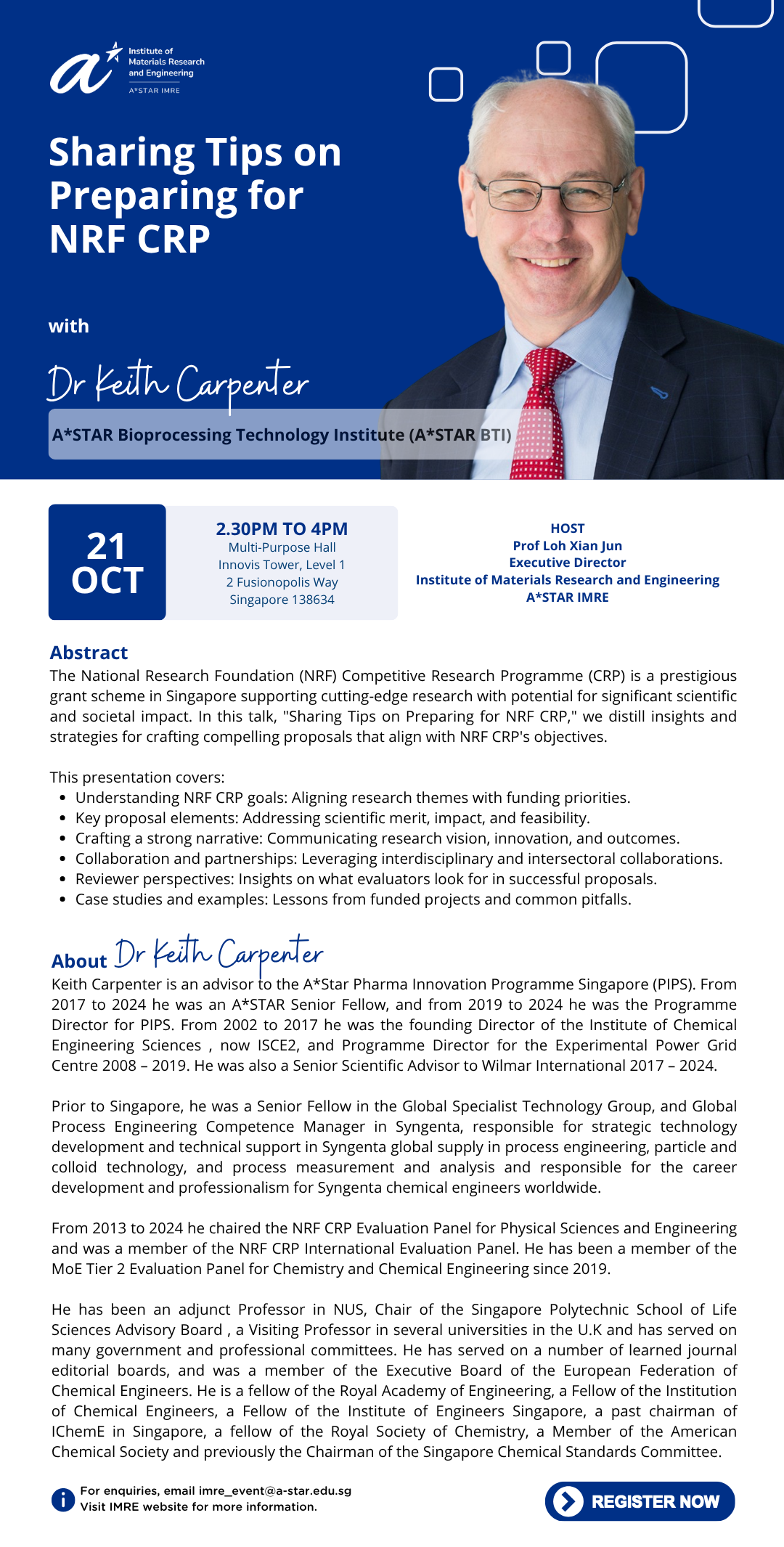 IMRE Seminar - "Sharing Tips on Preparing for NRF CRP" by Dr Keith Carpenter