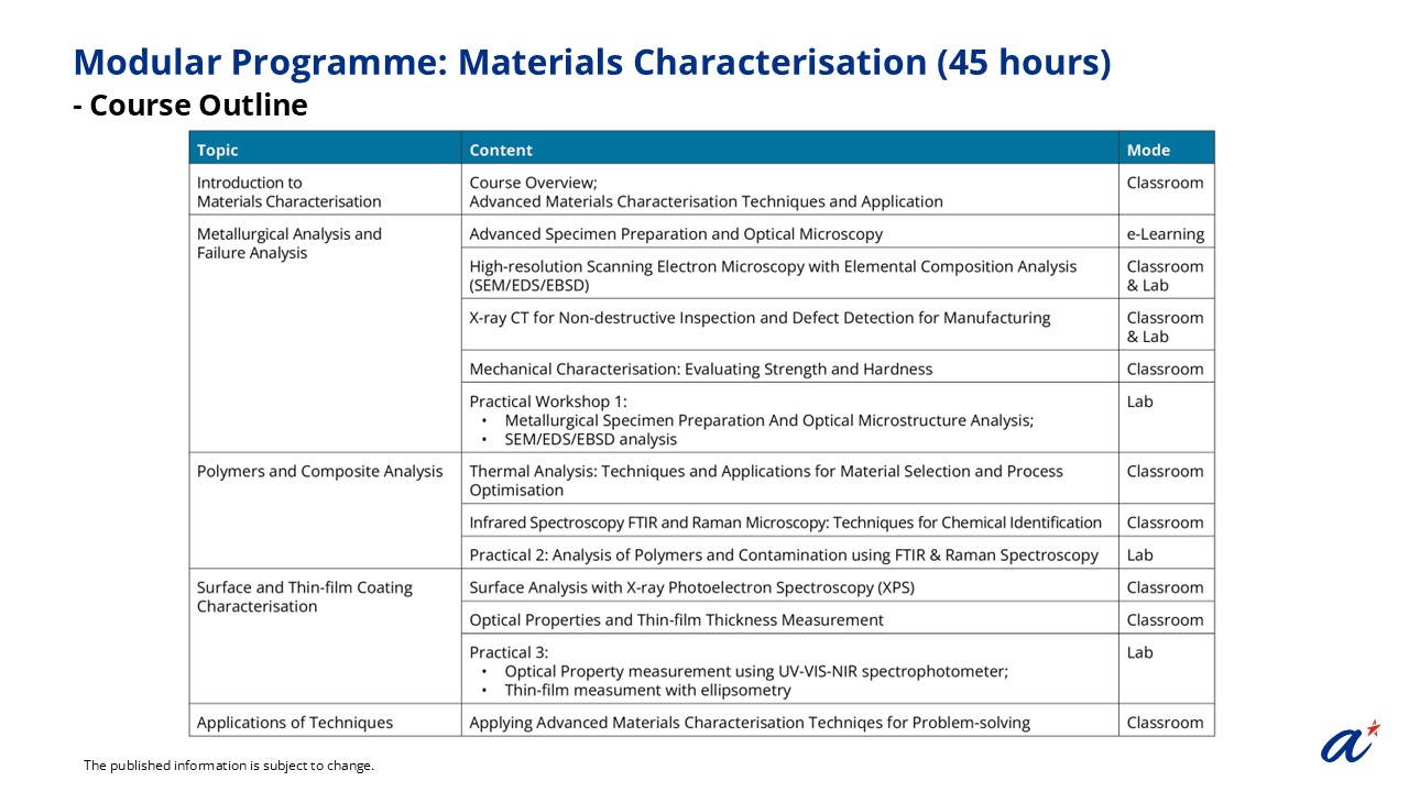 - View the full list of modular programmes offered by A*STAR SIMTech and A*STAR ARTC.
