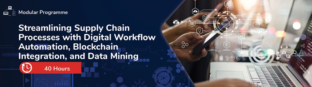 The course spans over 10 sessions, during which managers and engineers will explore the practical applications of Digital Workflow Automation, Blockchain Integration, and Data Mining in supply chain operations through classroom learning, exercises, and real-world implementation.
