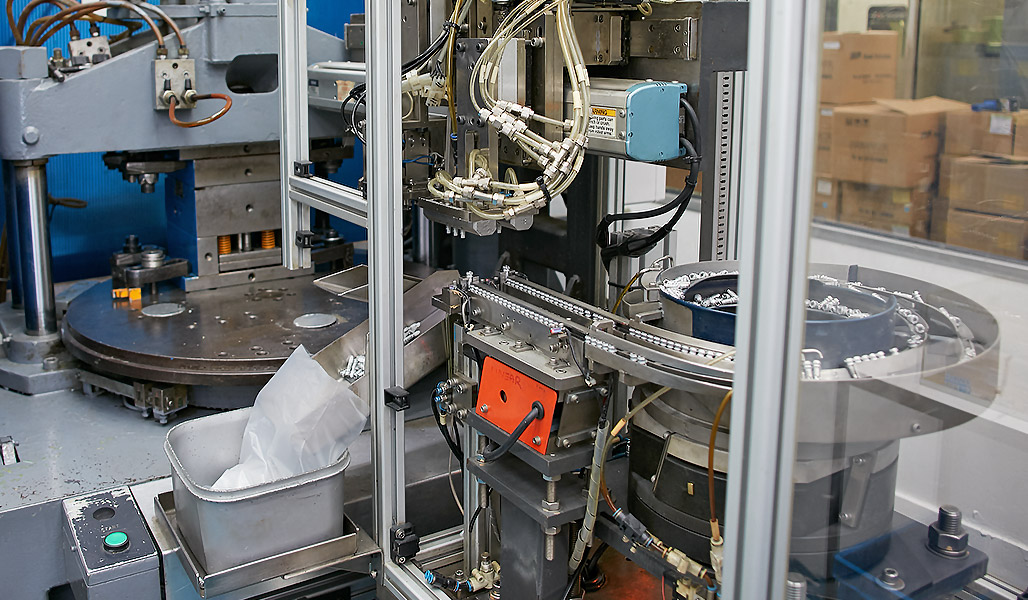 This conventional manual vertical moulding machine was transformed with an auto robotic and auto-feeding operation process, so that no operator is required. Previously, at least two operators were required.