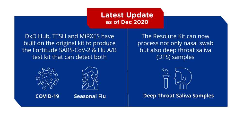 DxD Hub and TTSH developed an expanded Fortitude Kit that can test for COVID-19 as well as influenza A and B. As patients with COVID-19 or flu exhibit a set of similar symptoms, it is difficult for healthcare professionals to differentiate between the two. This new kit allows for a more accurate and timely diagnosis.